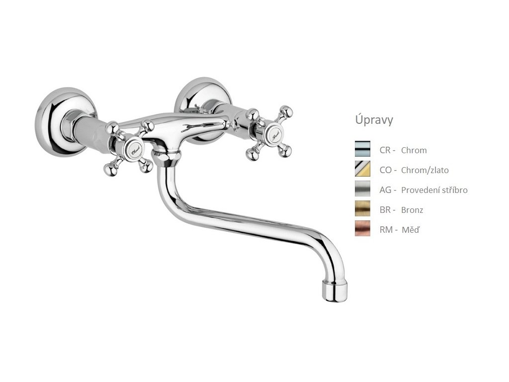 BELINDA umyvadlová/dřezová nástěnná baterie, retro
